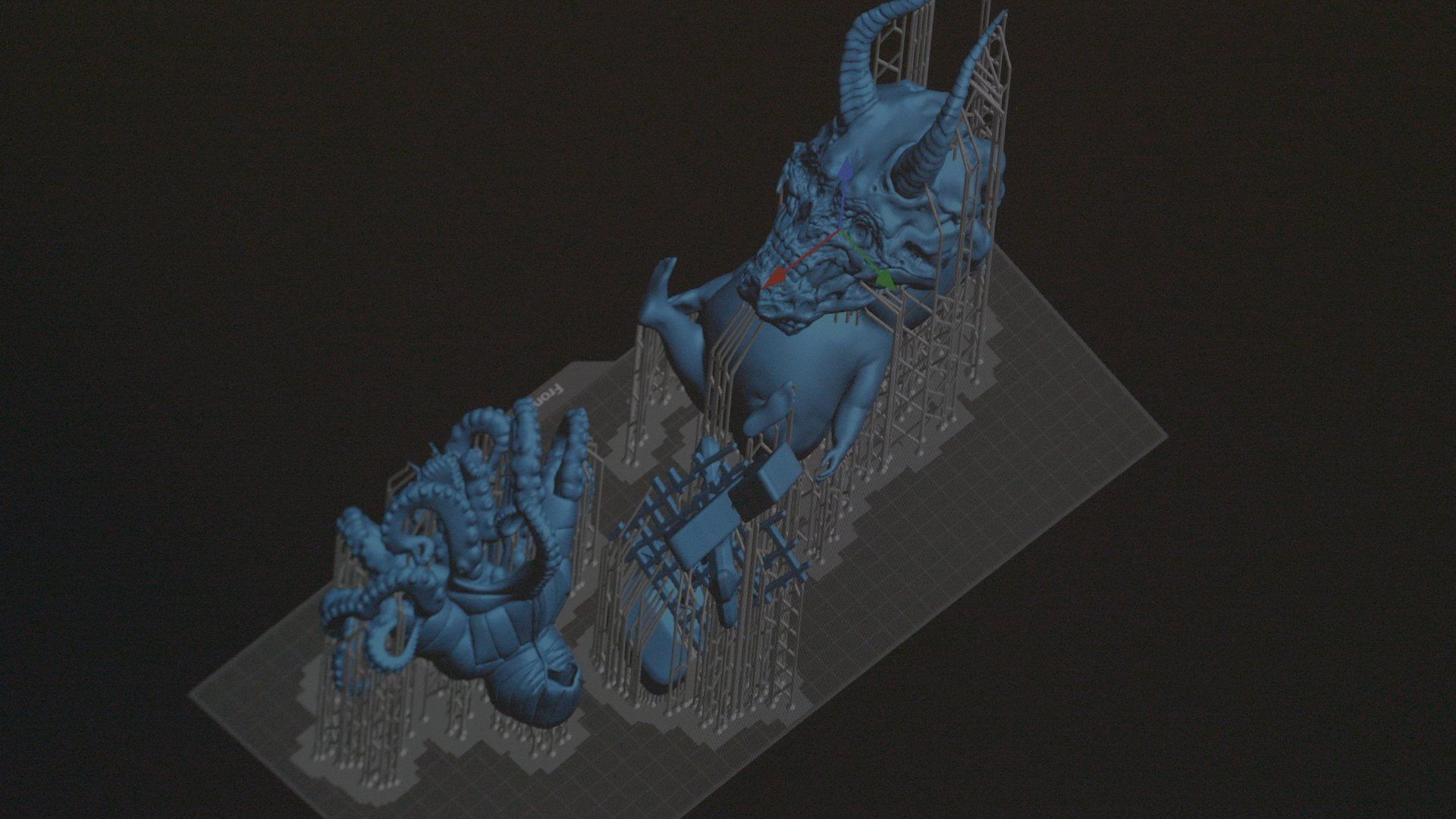 取り敢えず勝手が分からないのでモデルを突っ込んでサポートを自動で付けていきます。データをプリンターに転送して出力開始。果たして結果は如何に……