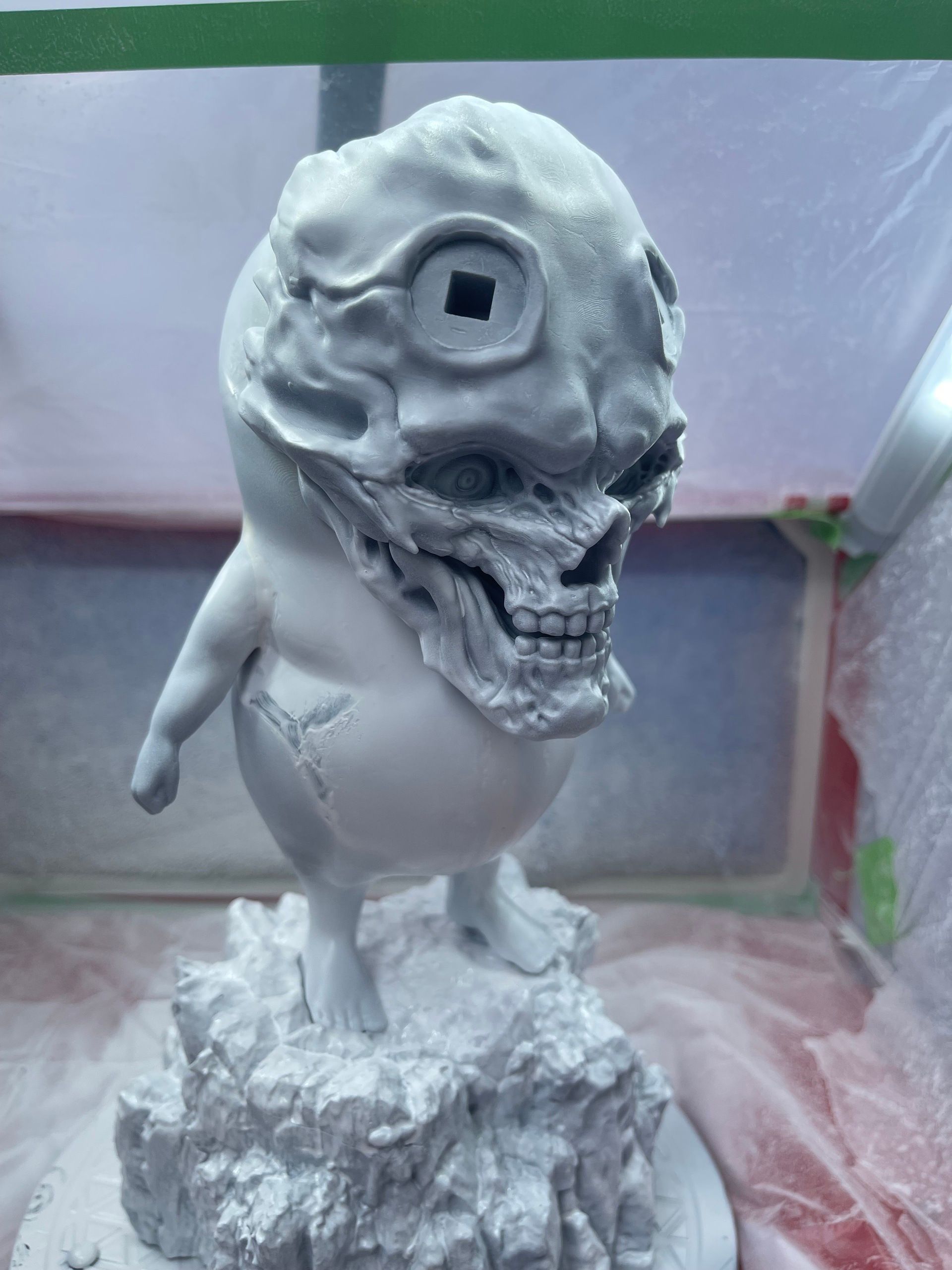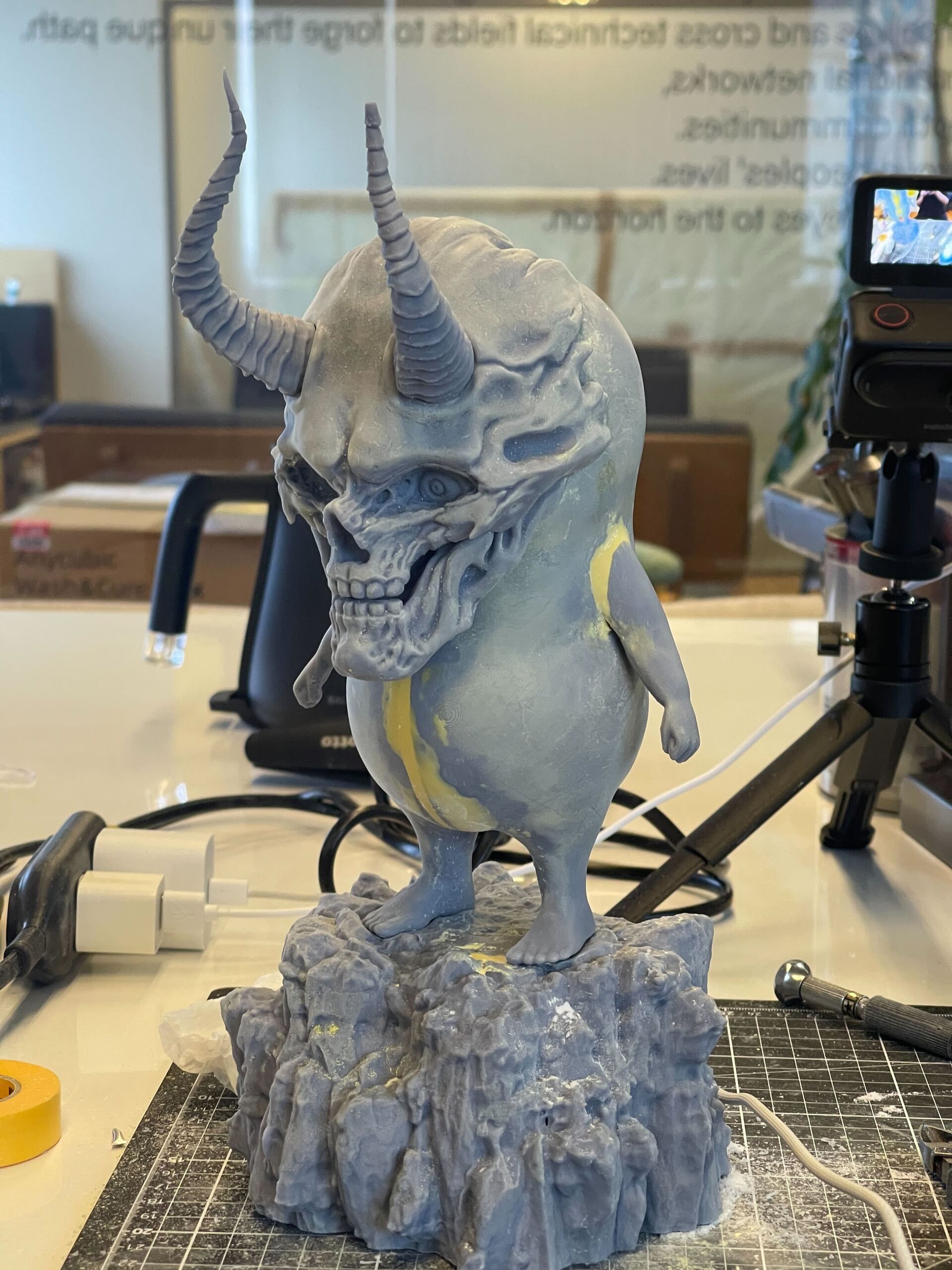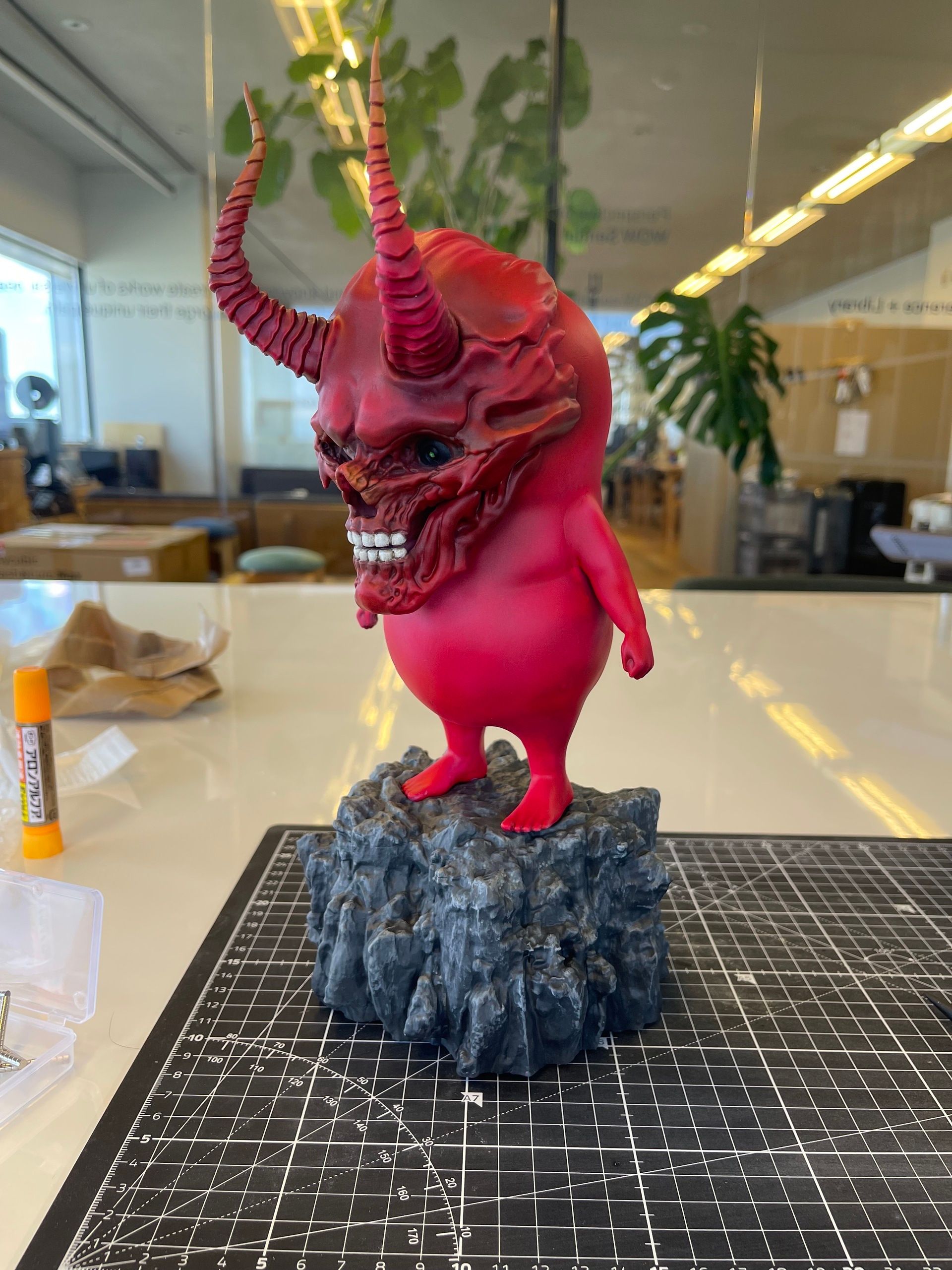 前回に引き続き、赤い小鬼「胎鬼」のメイキング後編です。前編ではモデルをプリントするところまででしたが、後編ではプリントしたモデルの組み立て、塗装、そして展示までをまとめていきます。