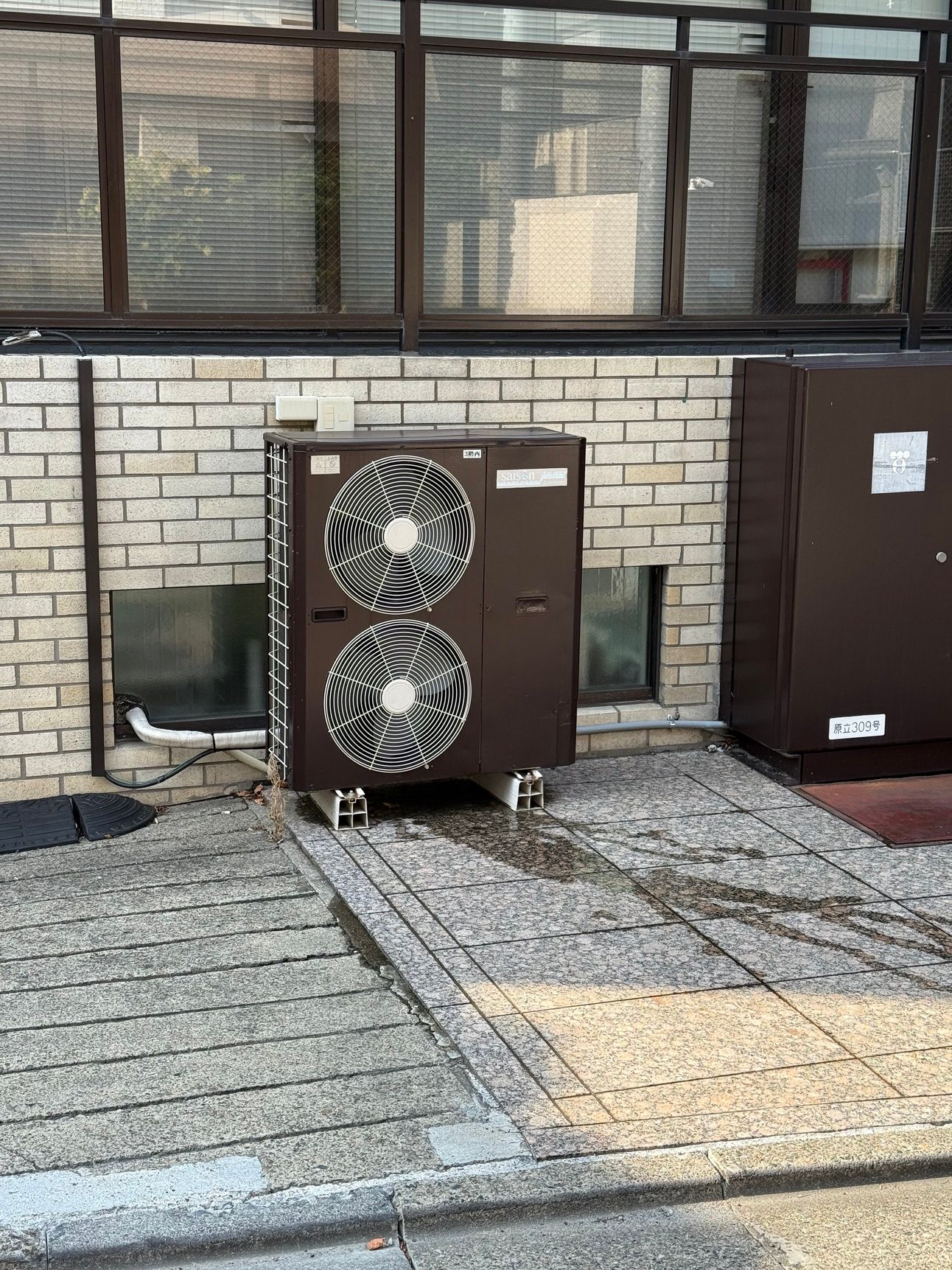 茶色く塗られた室外機