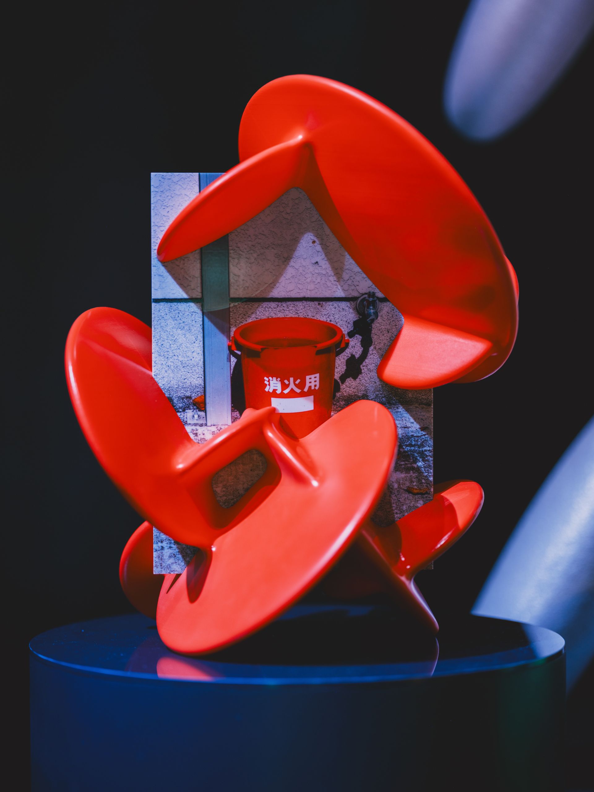 「FRAME」は、その連想コラージュをさらに実体化した実験作である。写真はアクリル板にUVプリントし、「リアル板ポリ」としてFLAT LABに依頼して制作。オブジェクトは3Dプリンタで出力されている。