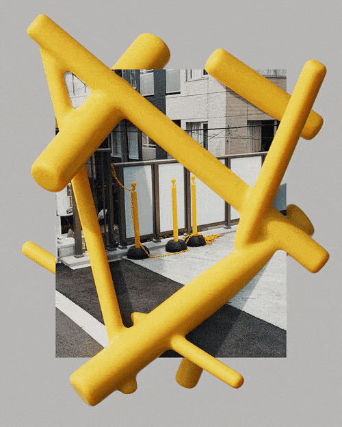 2024年5月頃から、街歩きで撮影したスナップ写真と3Dを組み合わせたコラージュ制作を始めた。3D、写真、グラフィックはこれまで個別に扱ってきた手法だが、それらを並列に扱い、どこまで境界を曖昧にできるのかを試してみたいと思ったのがきっかけだった。