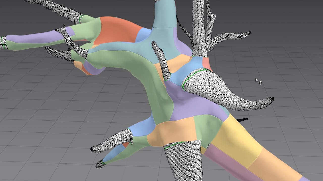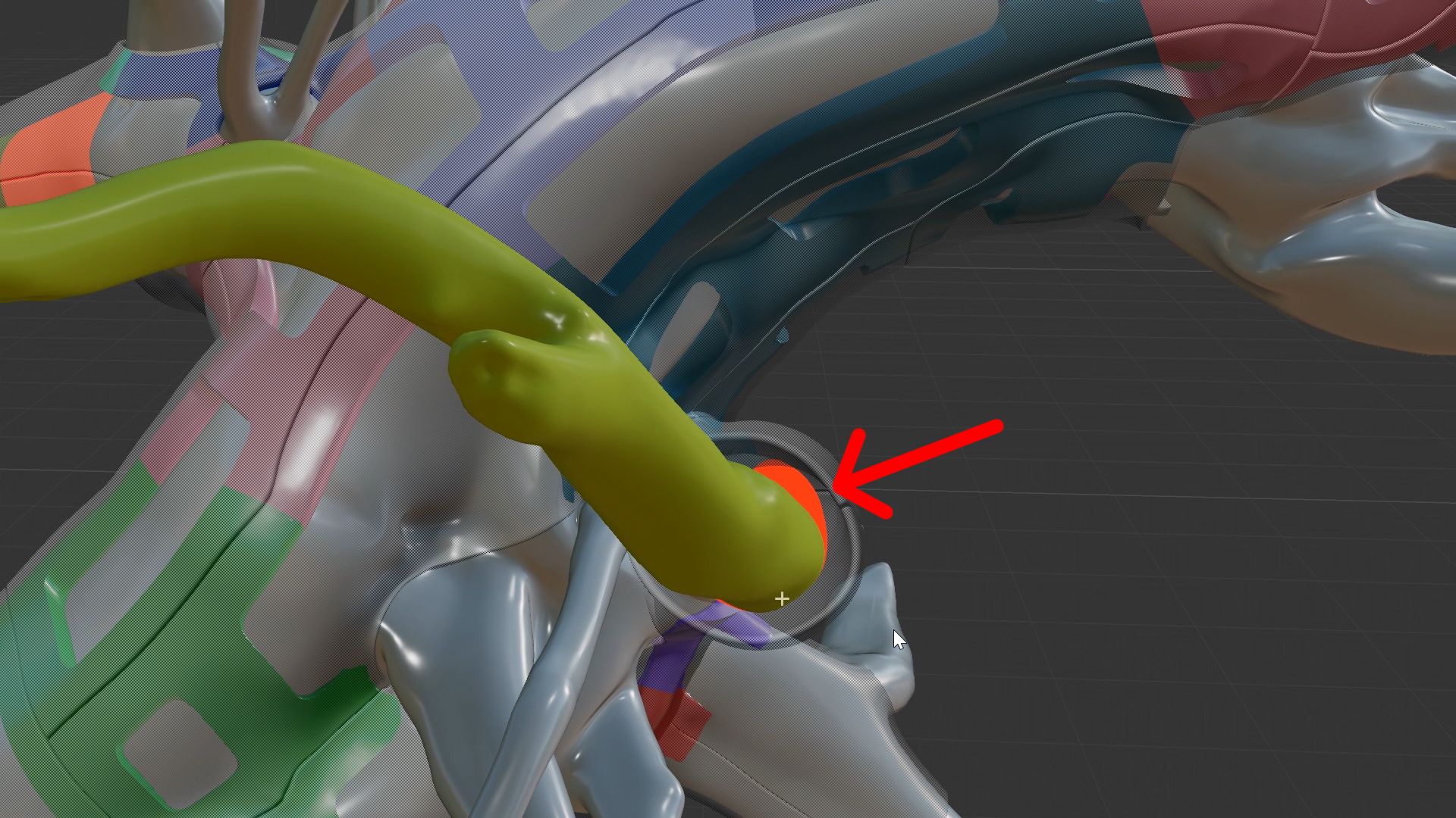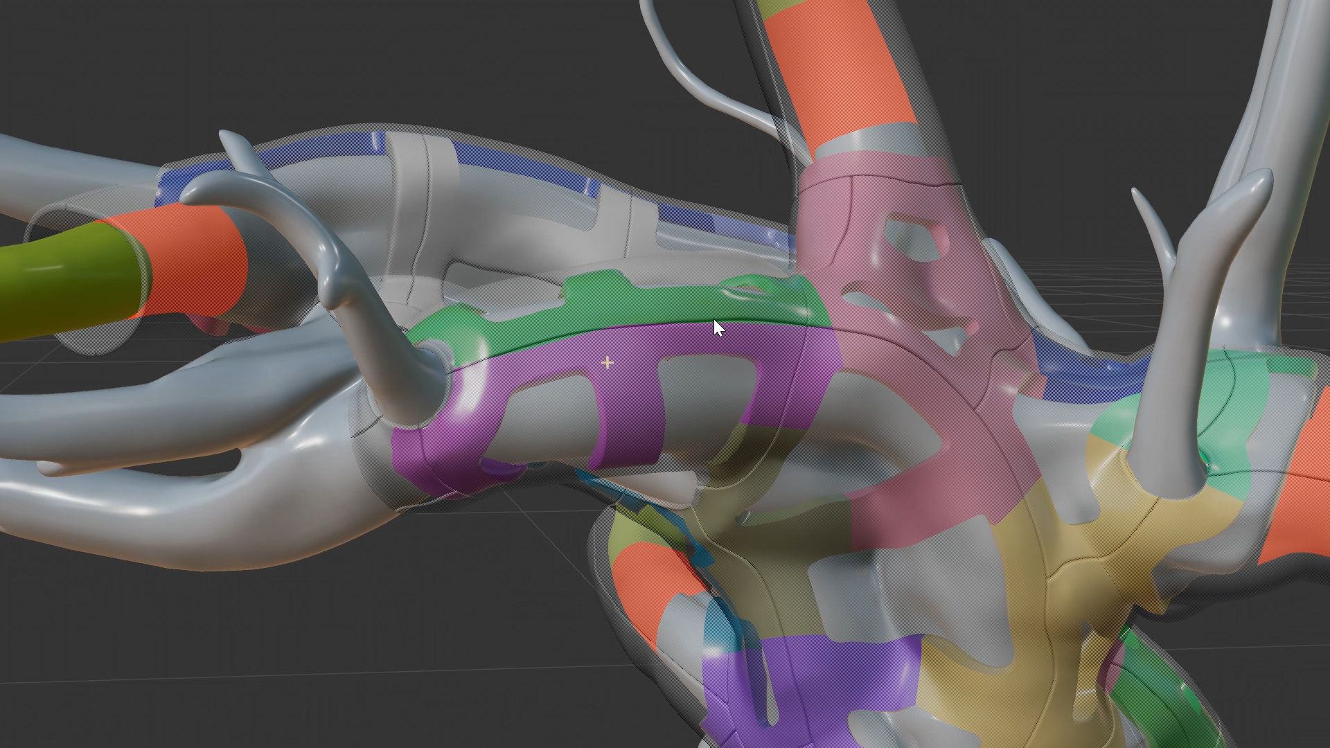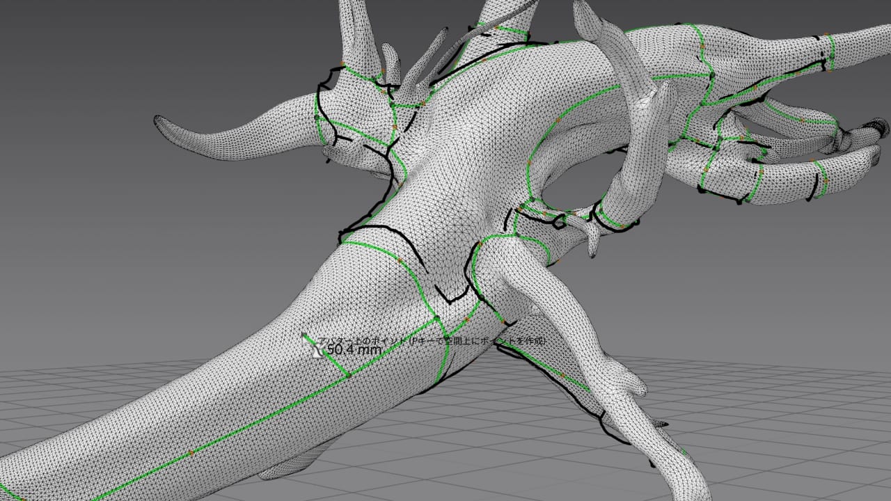 皮膚パーツの境界を3Dモデルに直接書き込んでいく。