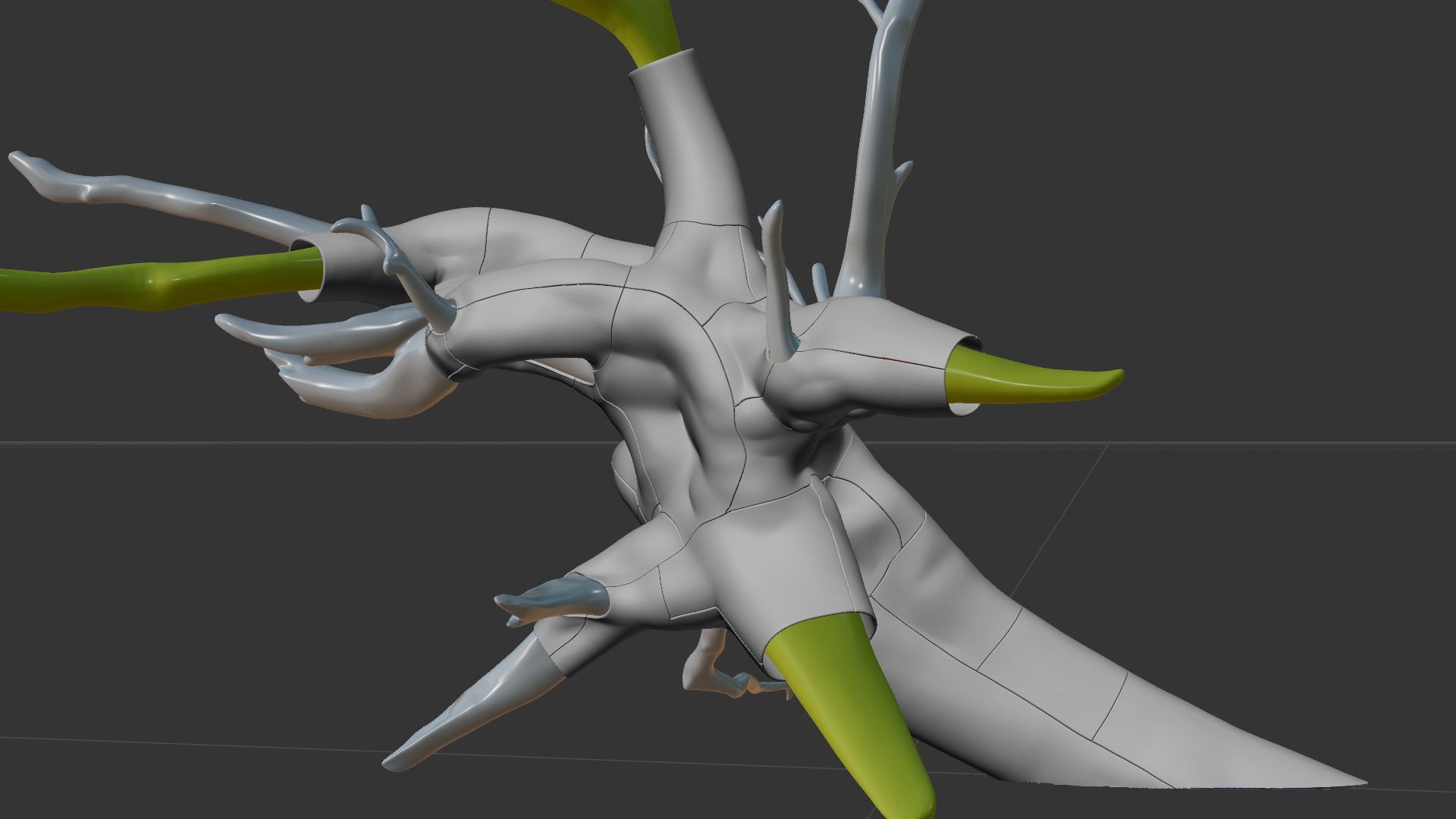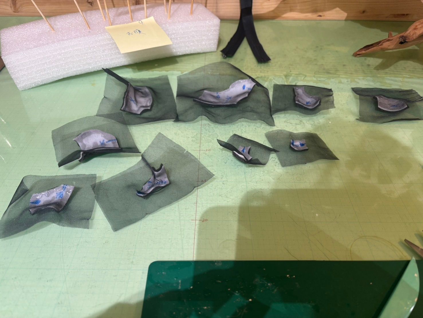 しわ感をどうやって表現していくのかを検討。衣装をパーツごとにわけて制作していくことにした。また個々のパーツのベースとして、皮膚のようなパーツを3Dプリントすることに決めた。