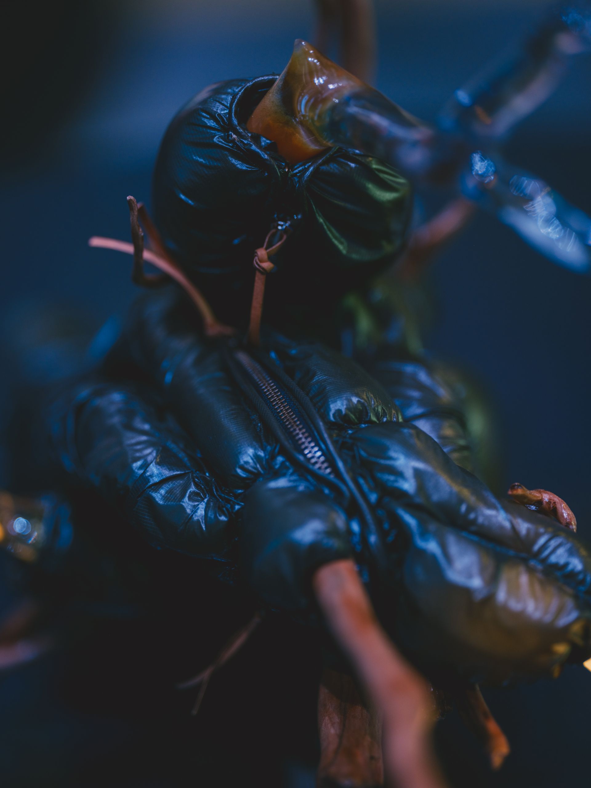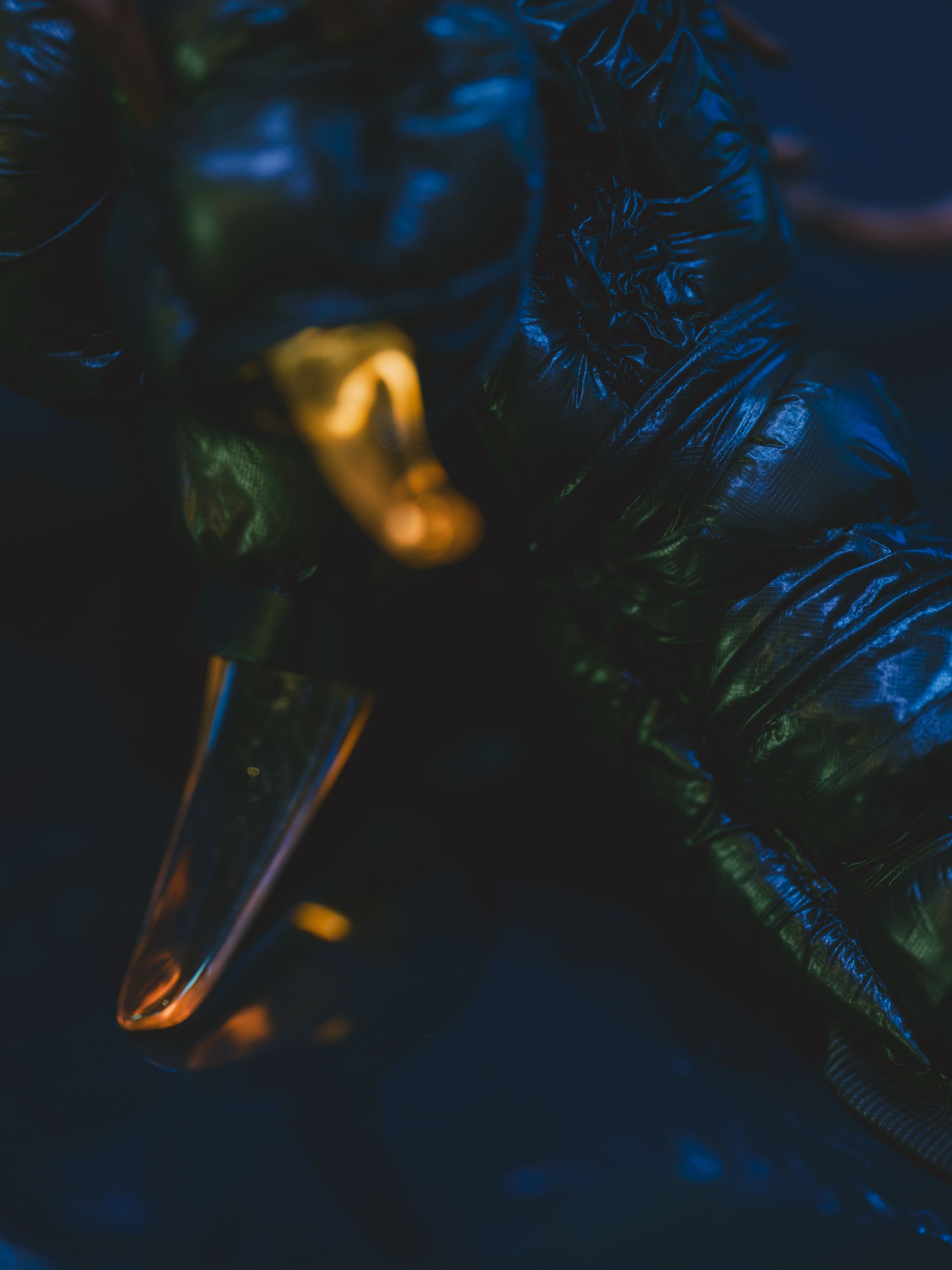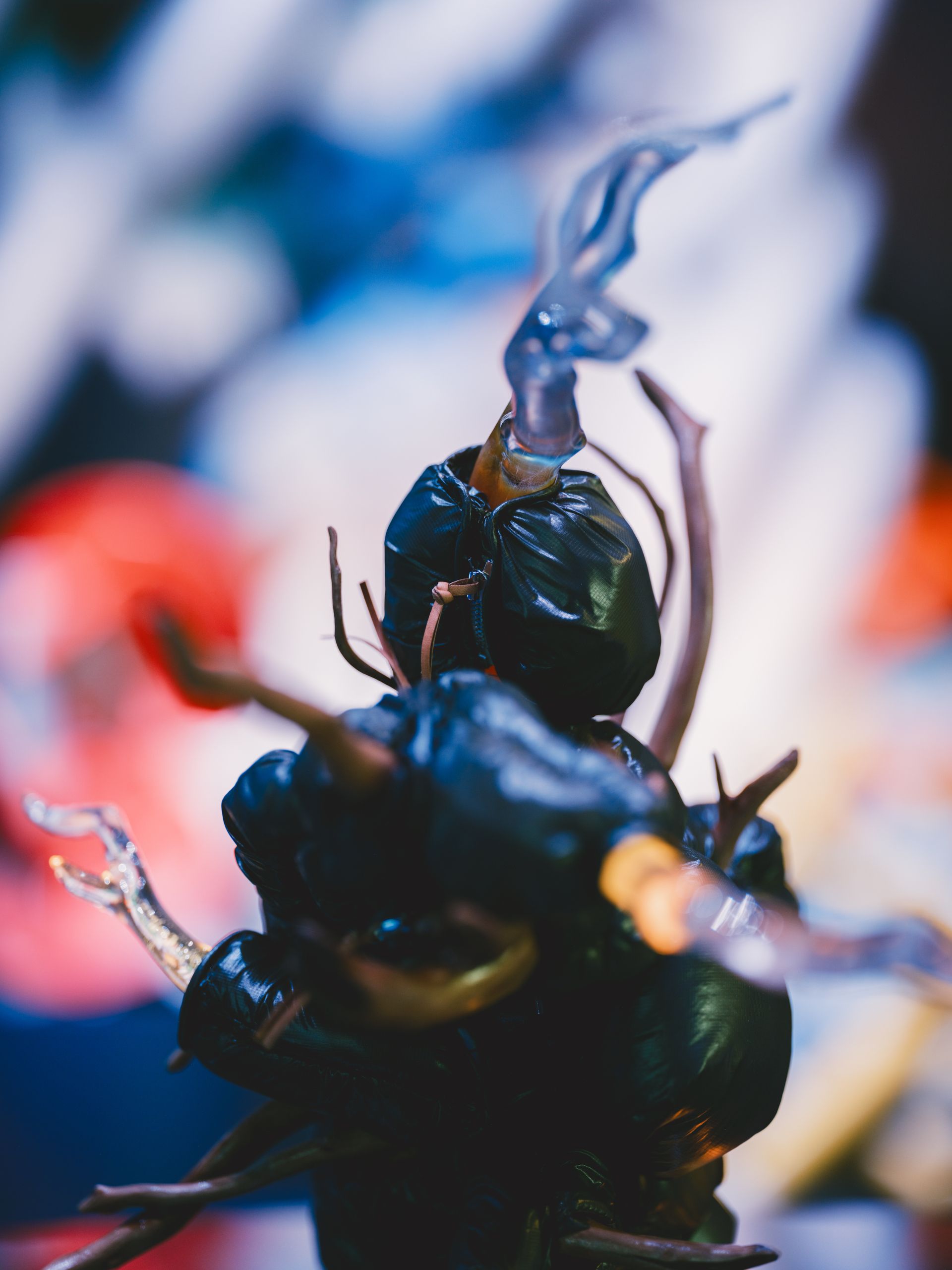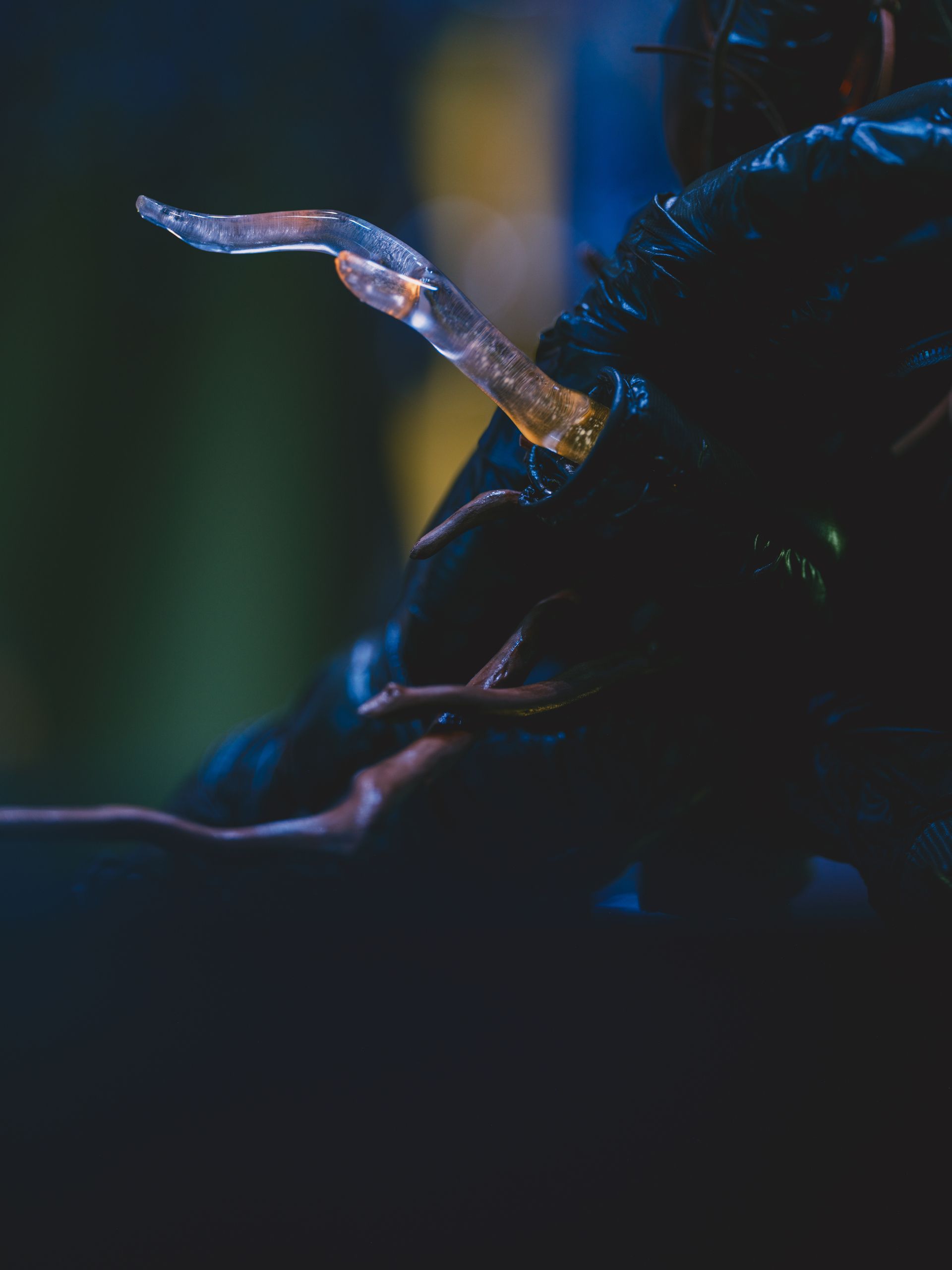 クリアな枝の中には無数の気泡を入れ込んだ。血管のように筋の感じるデザインにしている。