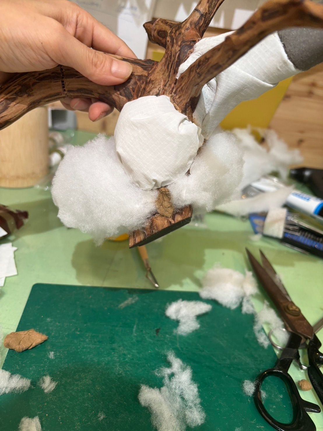 その後、照明機構を取り付けるための処理を木に施し、接地箇所の余分な木を切断。