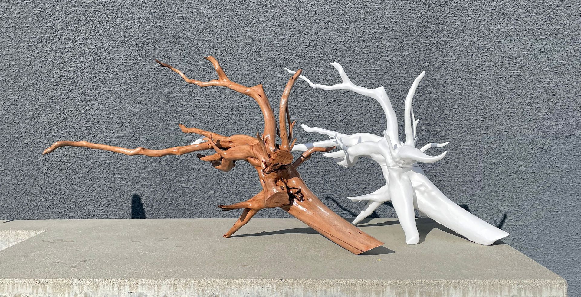 本作は、かつて大地に埋もれていた木の根を用いて、