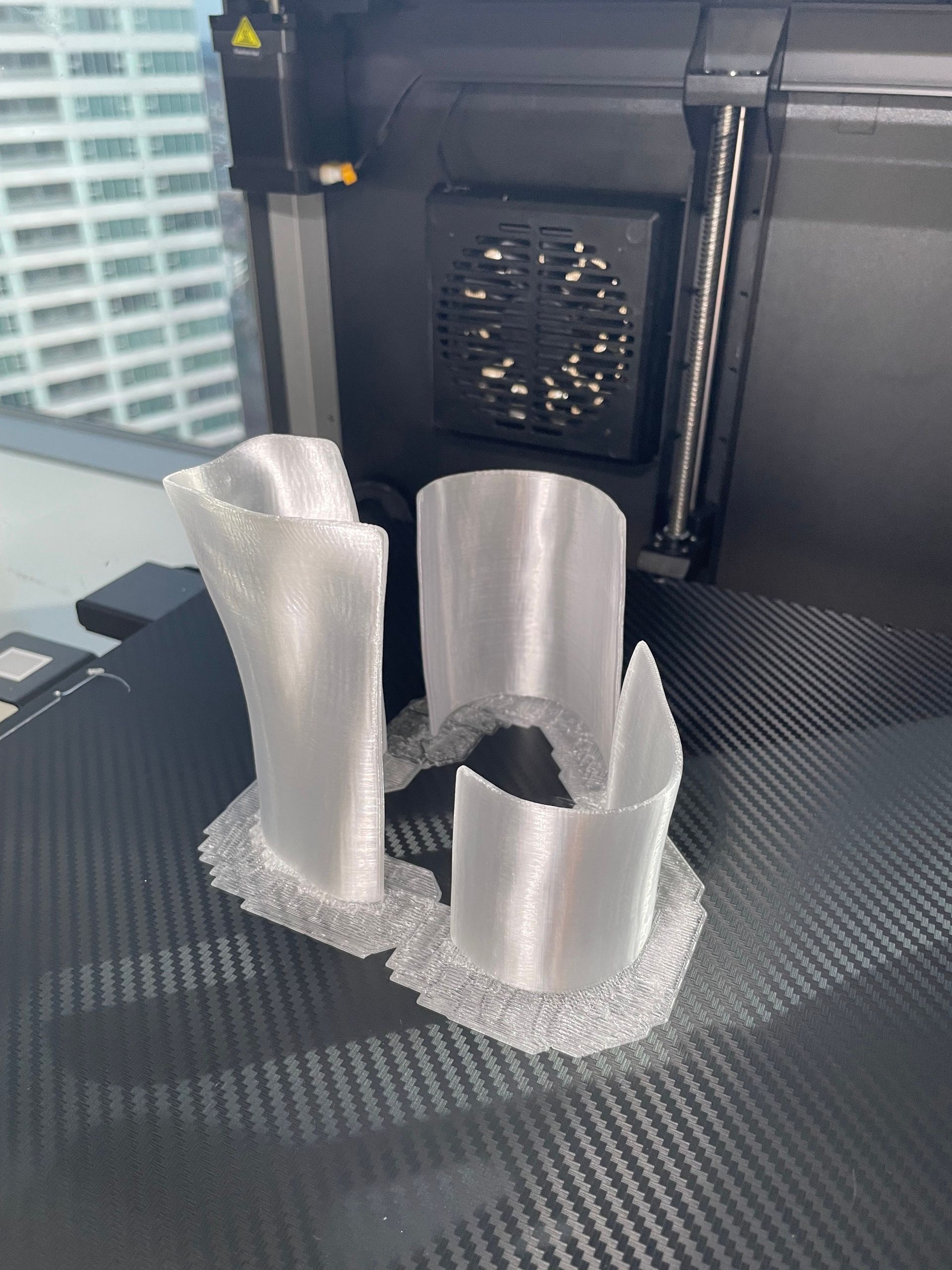 CGでモデリングした皮膚パーツと嵩上げパーツの出力。熱対策として難燃性のフィラメントを使用している。